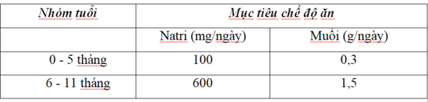 Natri và Clo, thành phần chủ yếu của muối, là hai nguyên tố có vai trò hết sức quan trọng trong cân bằng thể dịch trong cơ thể, sự tồn tại và hoạt động bình thường của tất cả các tế bào, hoạt động chức năng của tất cả các cơ quan và bộ phận trong cơ thể. Điều này có nghĩa rằng dù là trẻ mới sinh hay đã lớn đều cần muối. Tuy nhiên, tùy vào từng độ tuổi mà lượng muối khác nhau. Ở Việt Nam, ngày 16/6/2016, nhu cầu dinh dưỡng khuyến nghị cho người Việt nam đã được Bộ Y tế phê duyệt. Theo đó, nhu cầu về Natri/muối cho trẻ nhỏ được khuyến nghị như sau: